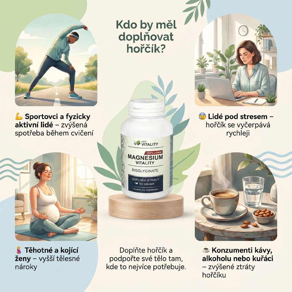 Magnesium Vitality je doplněk stravy s hořčíkem ve formě chelátu.