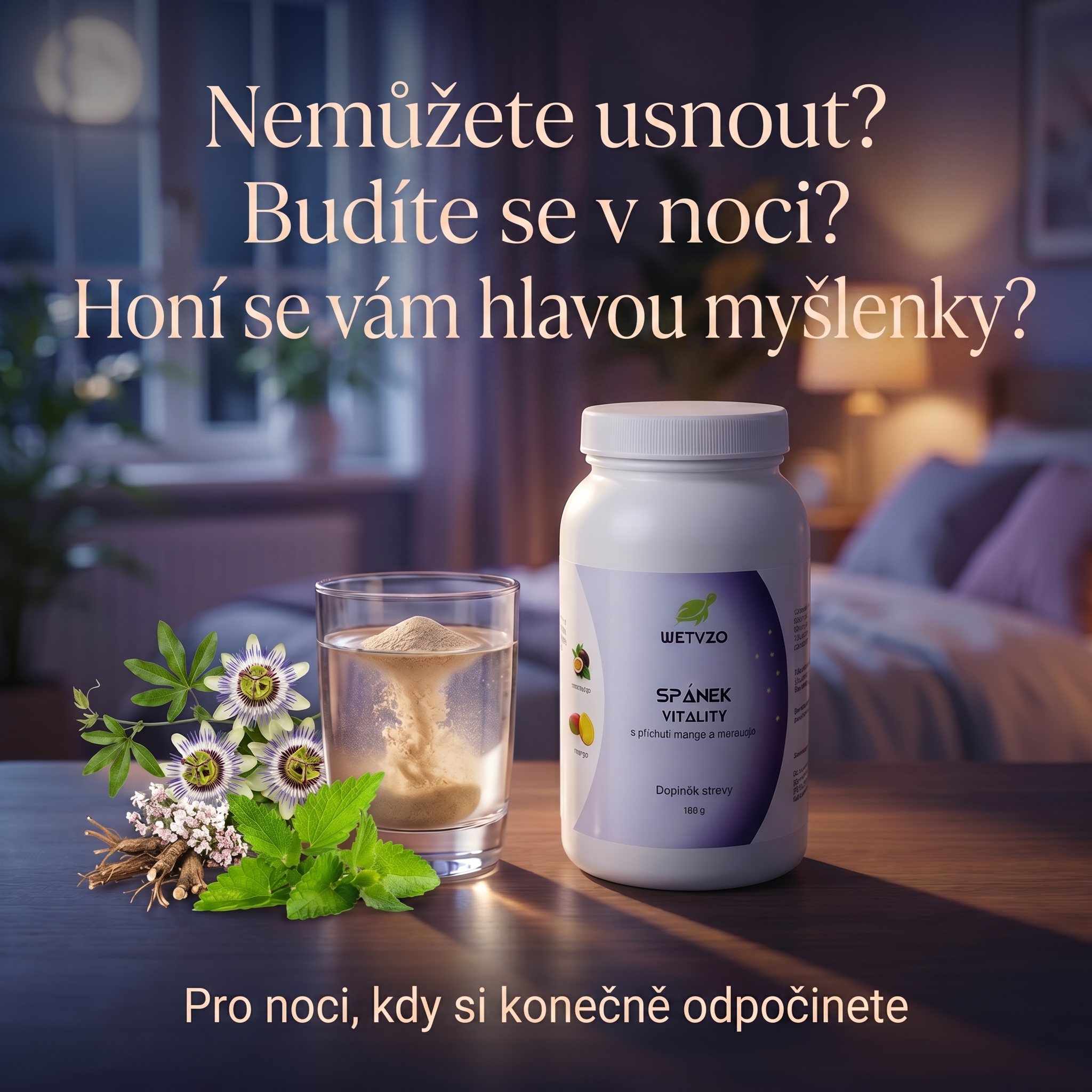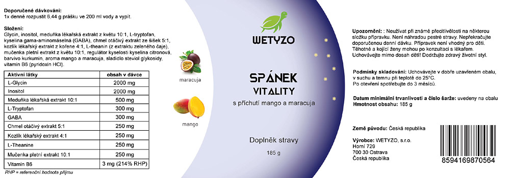 Spánek Vitality navíc obsahuje extrakty meduňky lékařské, kozlíku lékařského, chmele otáčivého, a mučenky pletní.